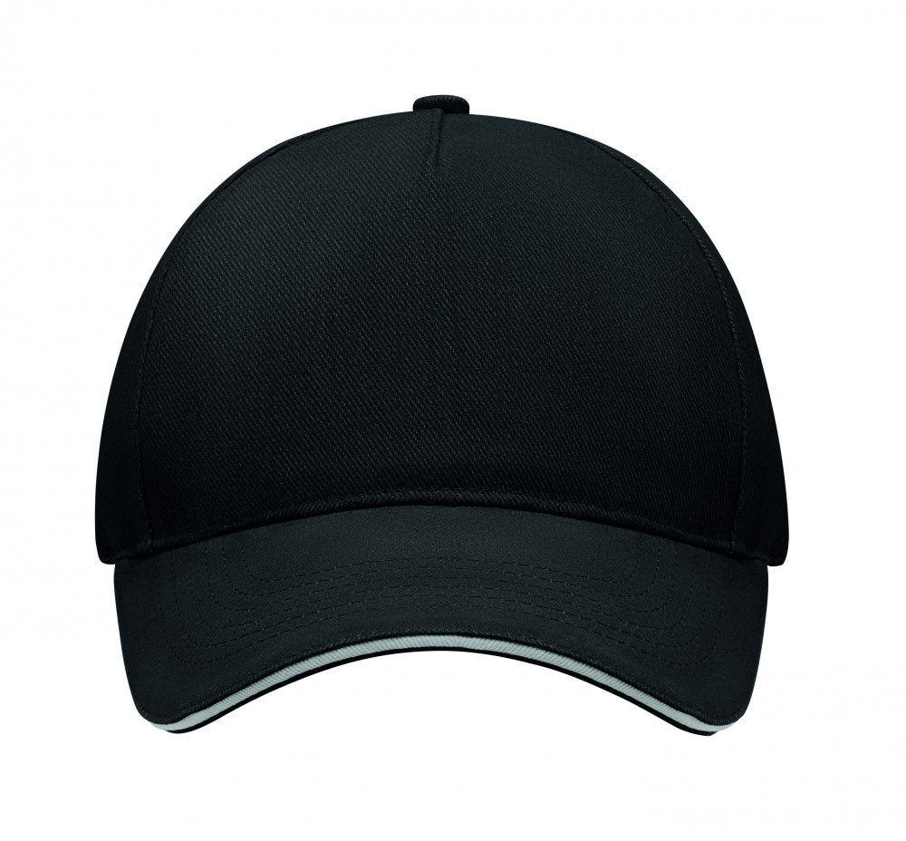 5 paneles baseball sapka 260 g vastag szálcsiszolt pamutból, ezüst színű acél csattal. 4 hímzett, színben illeszkedő szellőzőlyukkal. Méret 7 1/4.