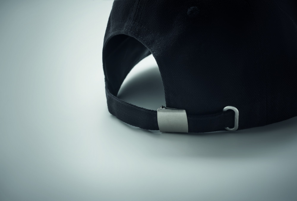 5 paneles baseball sapka 260 g vastag szálcsiszolt pamutból, ezüst színű acél csattal. 4 hímzett, színben illeszkedő szellőzőlyukkal. Méret 7 1/4.