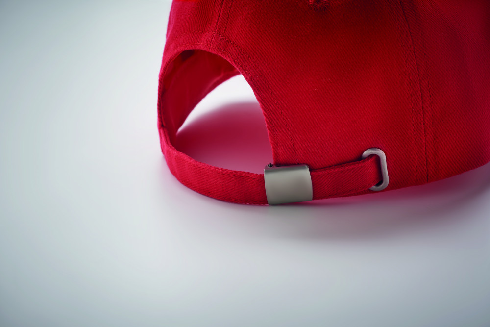 5 paneles baseball sapka 260 g vastag szálcsiszolt pamutból, ezüst színű acél csattal. 4 hímzett, színben illeszkedő szellőzőlyukkal. Méret 7 1/4.