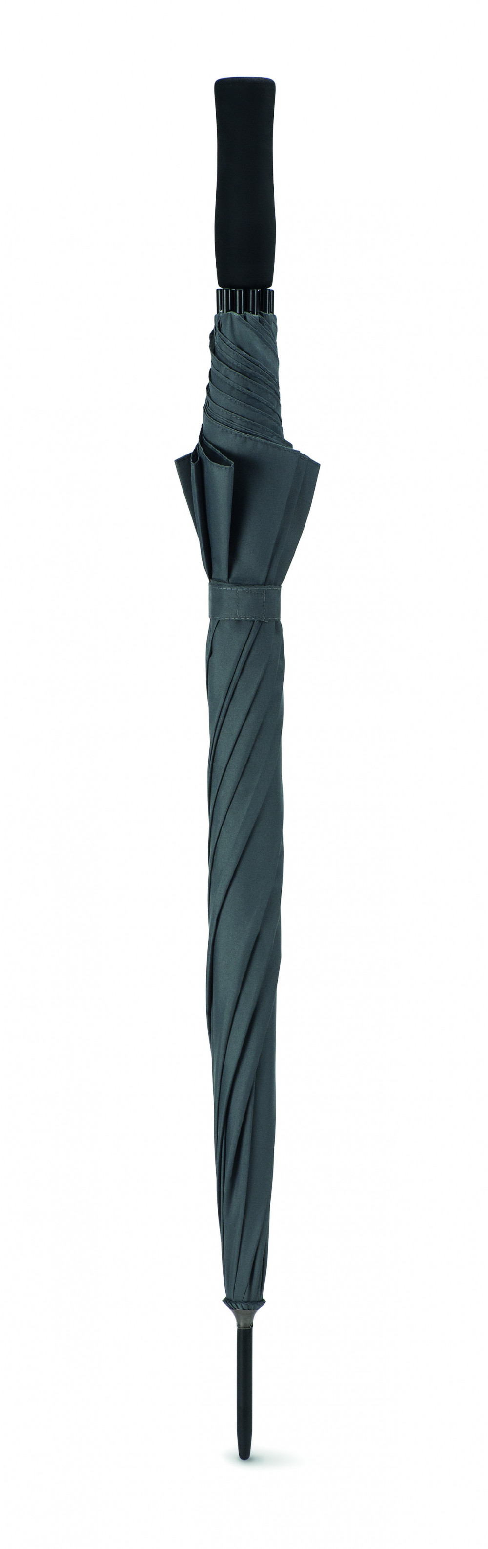 23 colos automata esernyő 190T pongee anyagból. Fekete fém nyél és váz. Fekete műanyag végek. Fekete egyenes, EVA markolat. Manuális záródás.