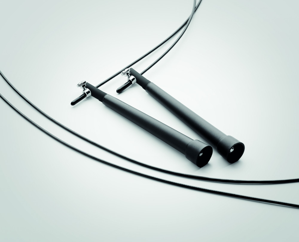 Állítható gyorsasági ugrókötél 210D RPET tokban.
