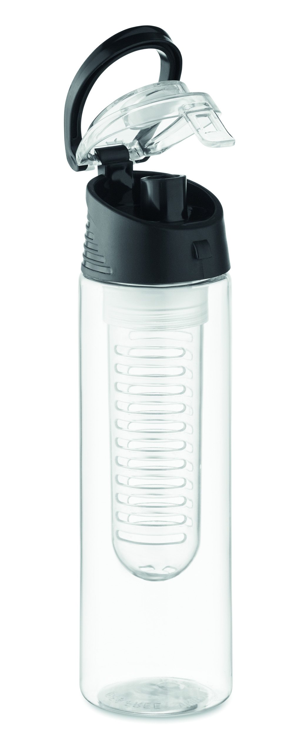 RPET kulacs kivehető gyümölcstartó betéttel, hordfüllel és szivárgásmentes fedéllel. Űrtartalom: 500 ml.