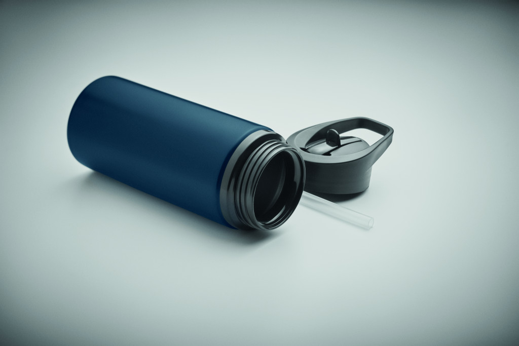 Újrahasznosított rozsdamentes acélból (90% újrahasznosított rozsdamentes acél és 10% rozsdamentes acél) készült szimplafalú palack, kihajtható ivórésszel, szívószállal és hordfüles fedéllel. Űrtartalom: 500 ml. Mivel ez egy szimplafalú bögre, hőátadás lehetséges.