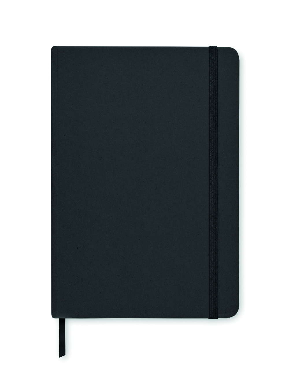 A5 jegyzetfüzet kemény, újrahasznosított kartonborítóval. Cérnafűzött. 160 vonalas (80 lap). Elasztikus zárópánt és könyvjelző szalag. FSC®-certified | FSC MIX CREDIT, P7.1 , FSC-C213206