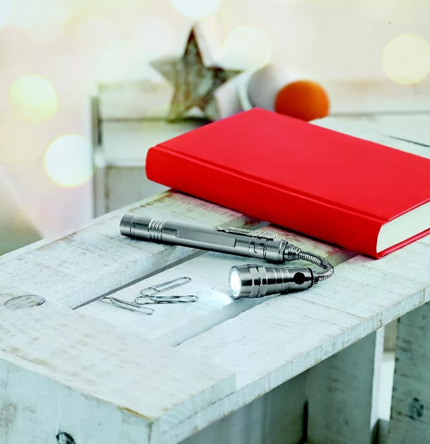 STRECH-TORCH Kihajtható elemlámpa, fakó ezüst