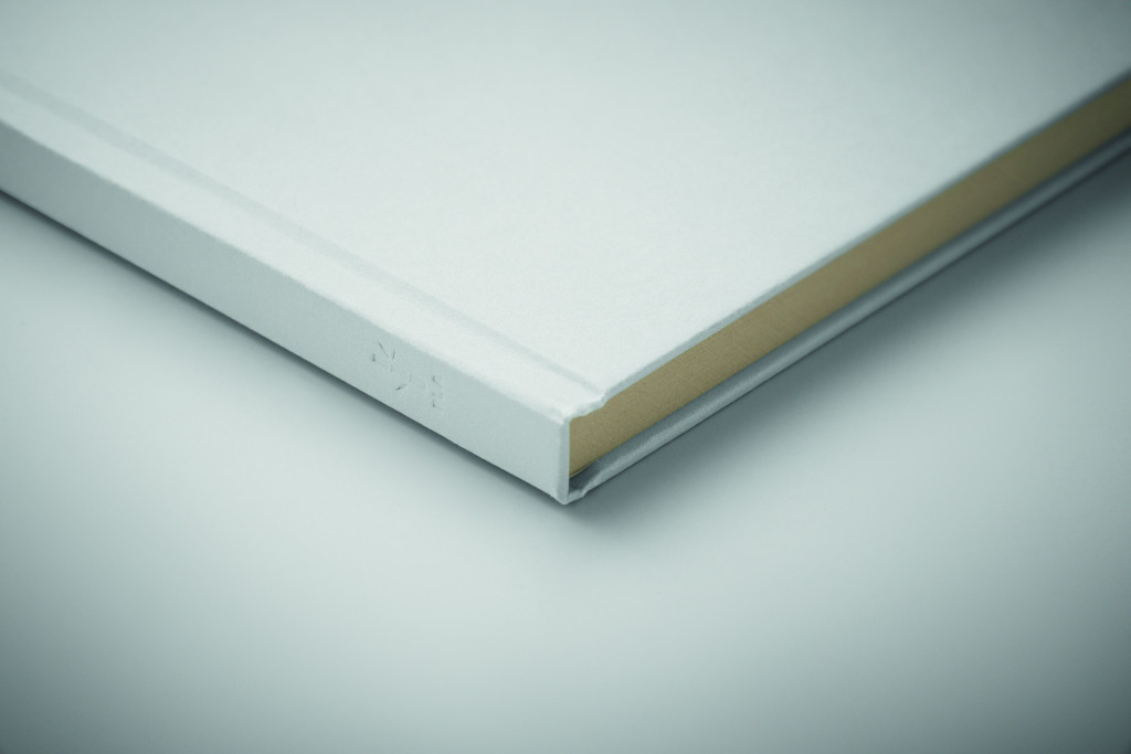 A5 jegyzetfüzet keménytáblás borítóval. 160 vonalas oldal (80 lap), cukornád PLA-ból (65% cukornádrost, 35% papír). Cérnafűzött.