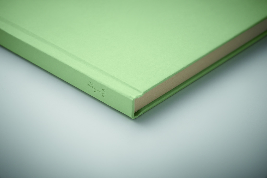 A5 jegyzetfüzet keménytáblás borítóval. 160 vonalas oldal (80 lap), cukornád PLA-ból (65% cukornádrost, 35% papír). Cérnafűzött.