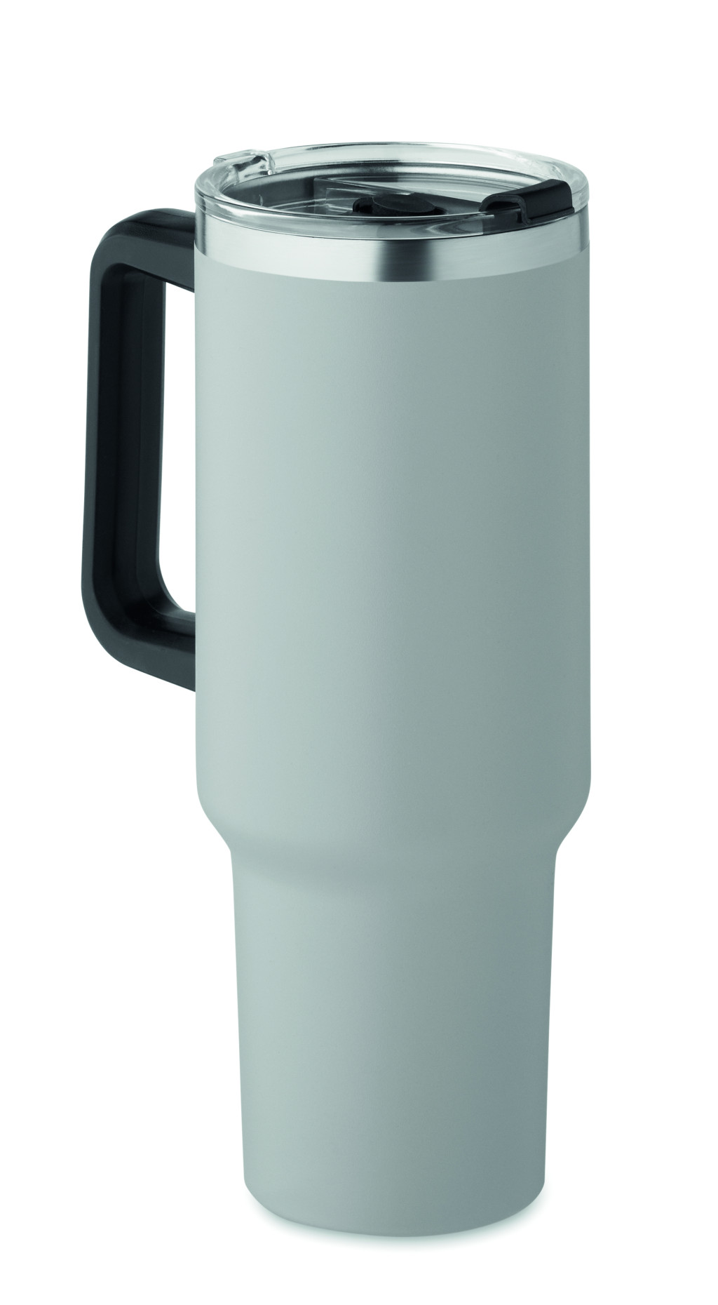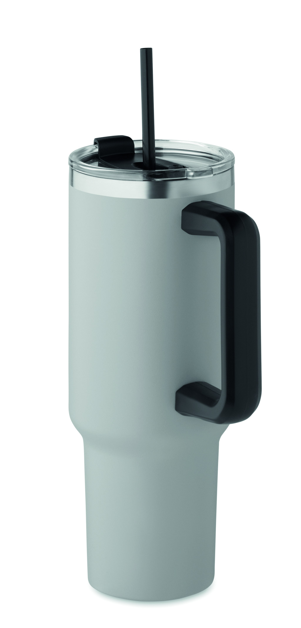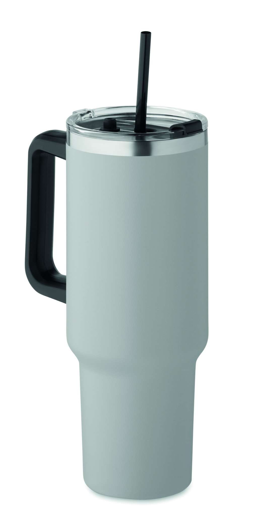 Duplafalú, újrahasznosított rozsdamentes acél pohár, beépített PE- szívószálas fedéllel. Űrtartalom 1200 ml. (90% újrahasznosított rozsdamentes acél és 10% rozsdamentes acél).