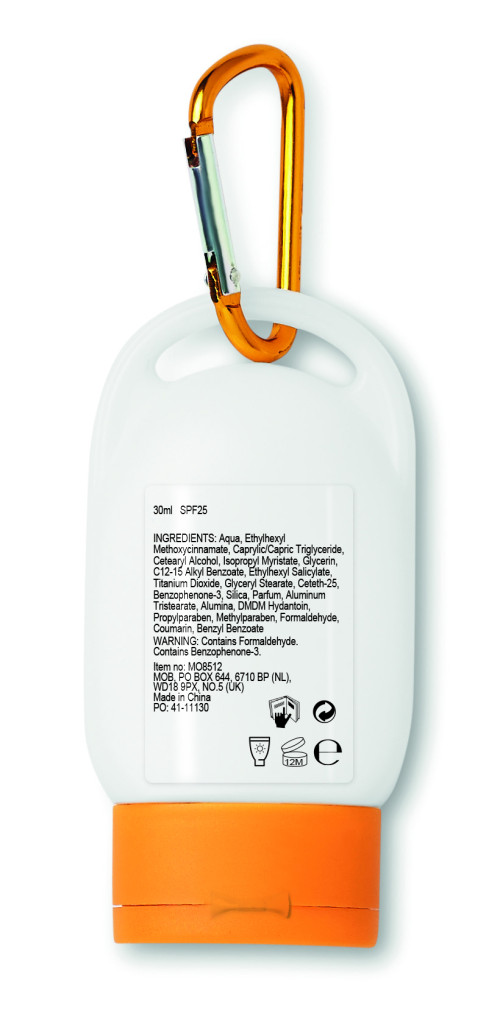Naptej akasztóval. 25-as fényvédő faktor. Űrtartalom: 30 ml.