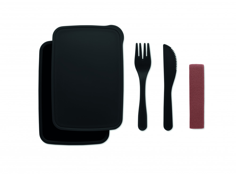 SUNDAY Uzsonnásdoboz evőeszközökkel, fekete