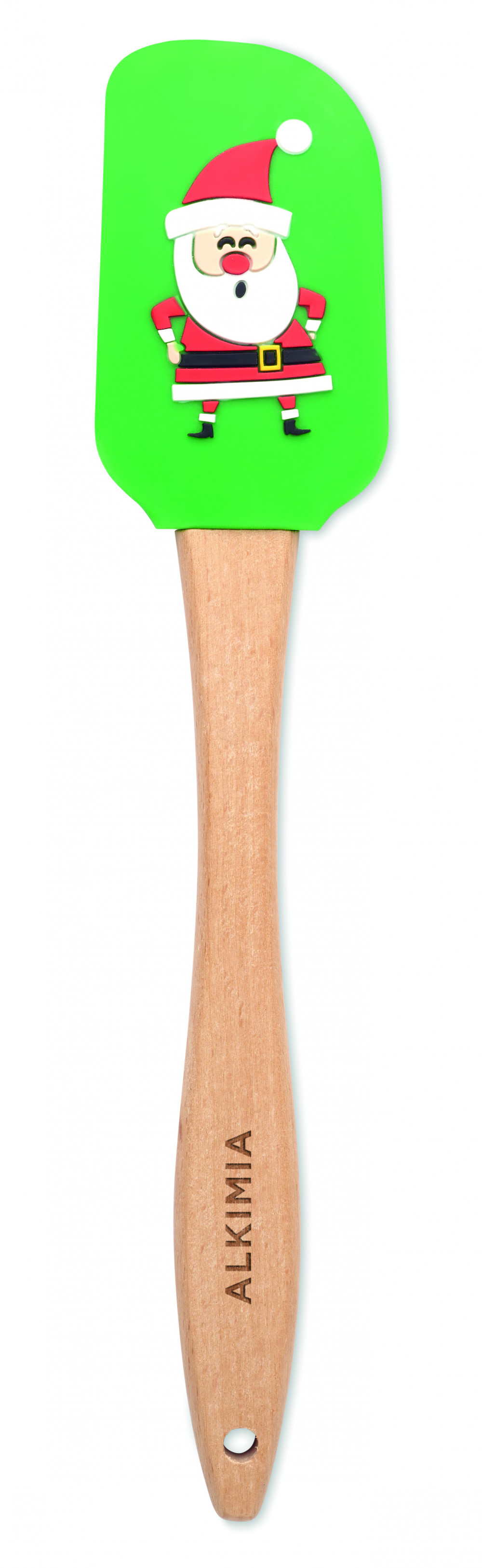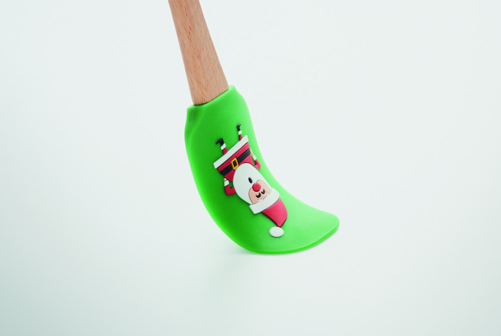 Karácsonyi motívumos szilikon konyhai spatula fa nyéllel.
