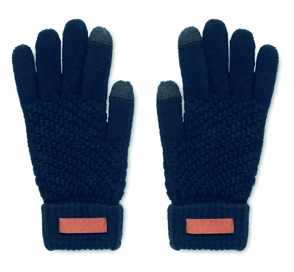 Kapacitív kesztyű okostelefonhoz RPET-ből, emblémázható címkével.