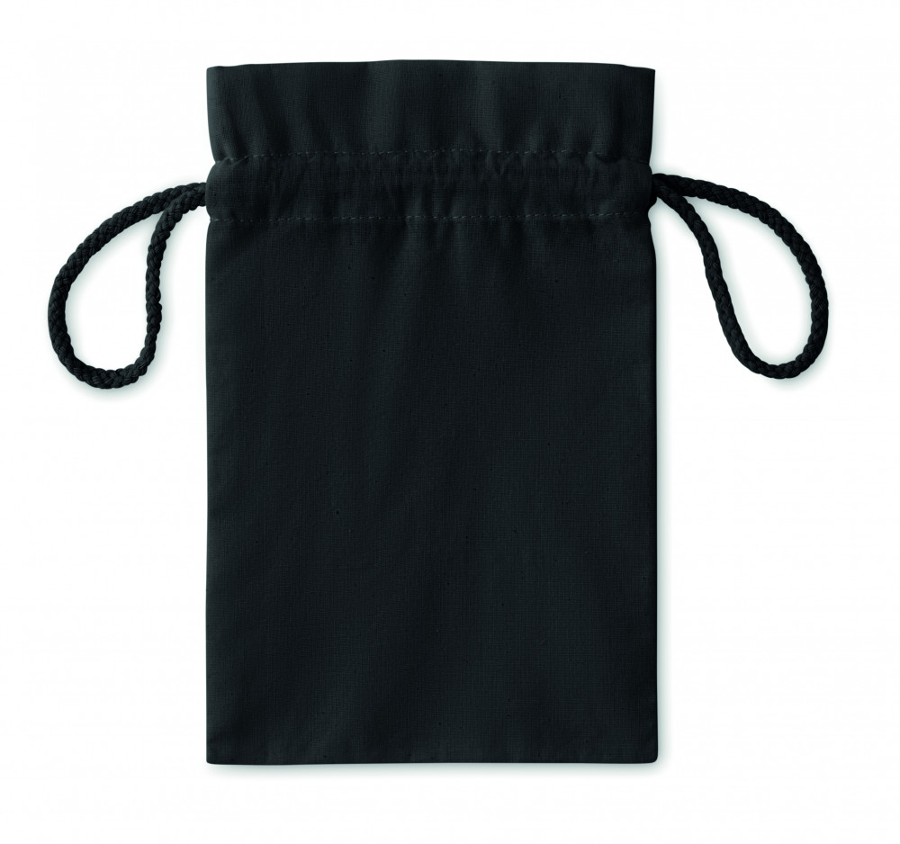 TASKE SMALL Kis pamut zsinórós tasak, fekete