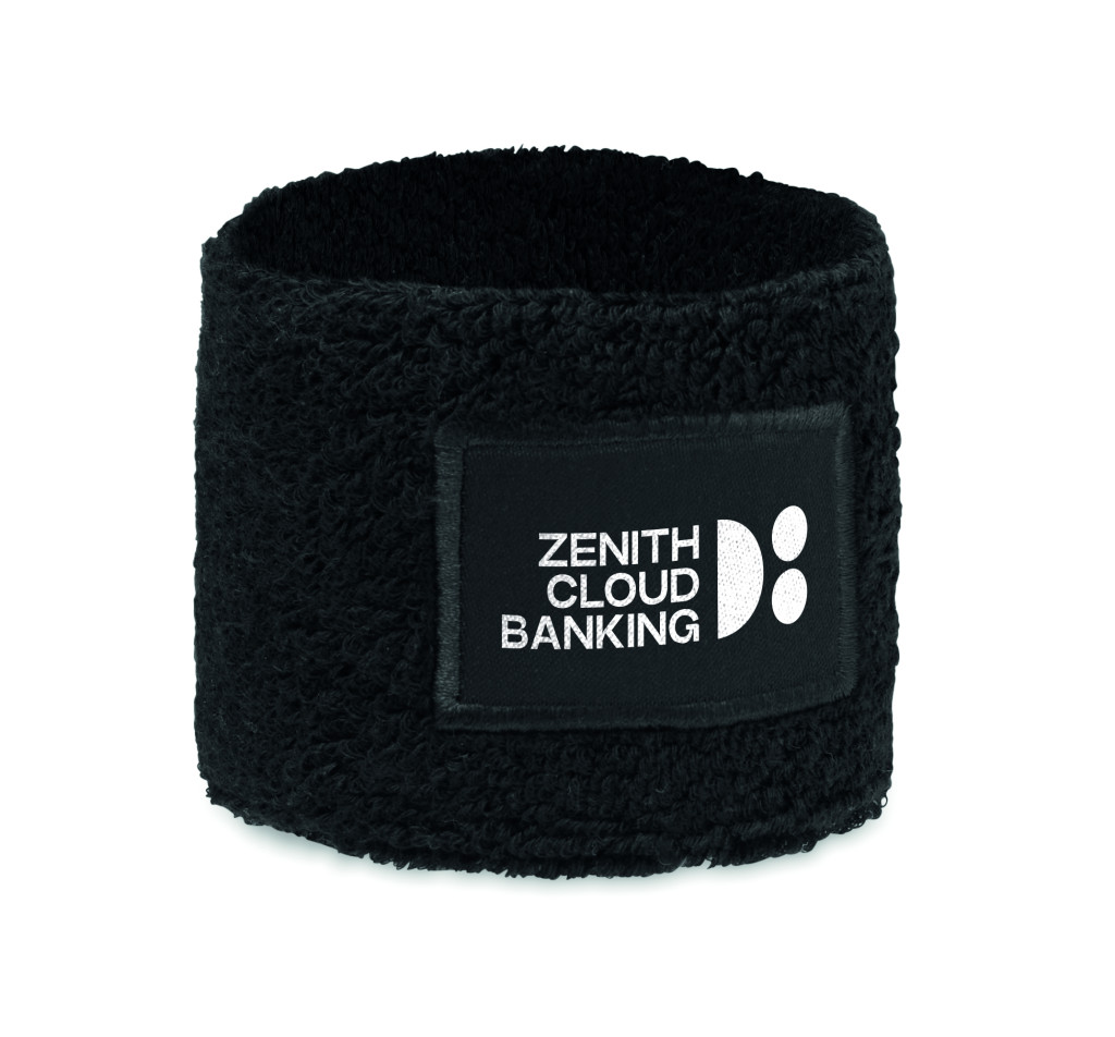 Csuklópánt poliészter-pamut kevert szálas anyagból (79% pamut, 13% elasztán, 8% poliészter), emblémázható pamut felvarróval.