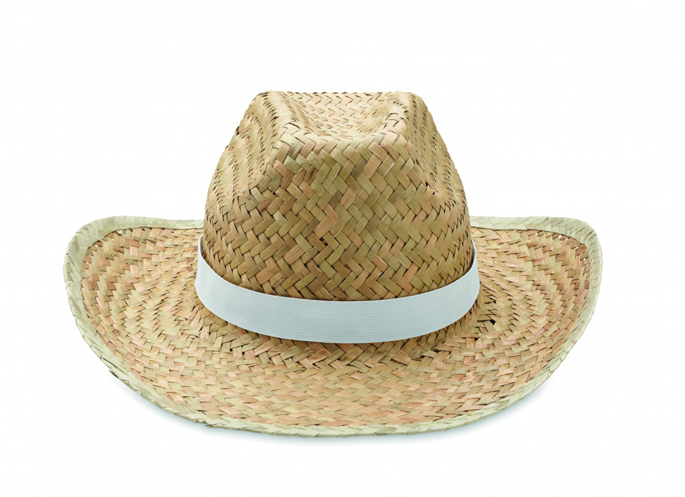 Cowboy fazonú természetes szalmakalap, poliészter pánttal.