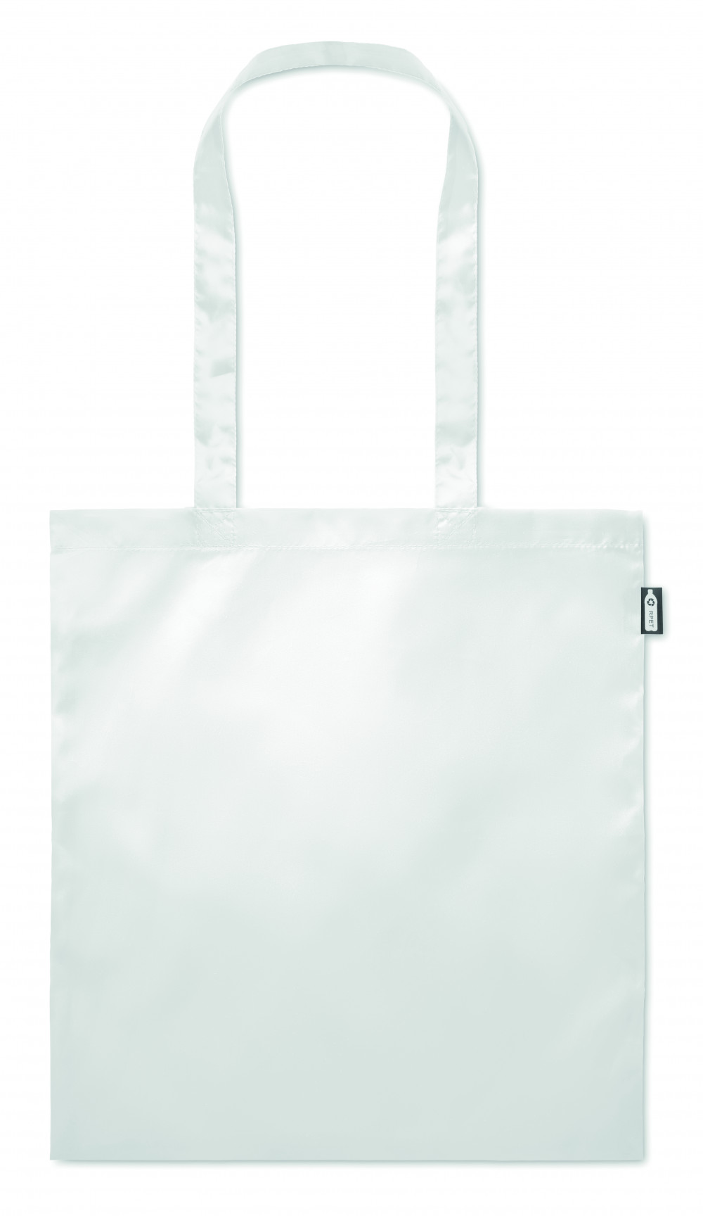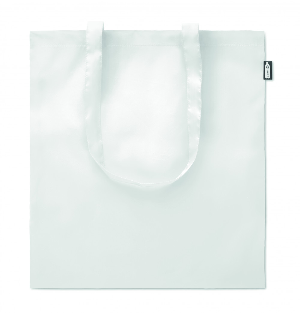 Bevásárlótáska 190T RPET anyagból, hosszú fülekkel. Újrahasznosított műanyag palackokból készült környezetbarát anyag.