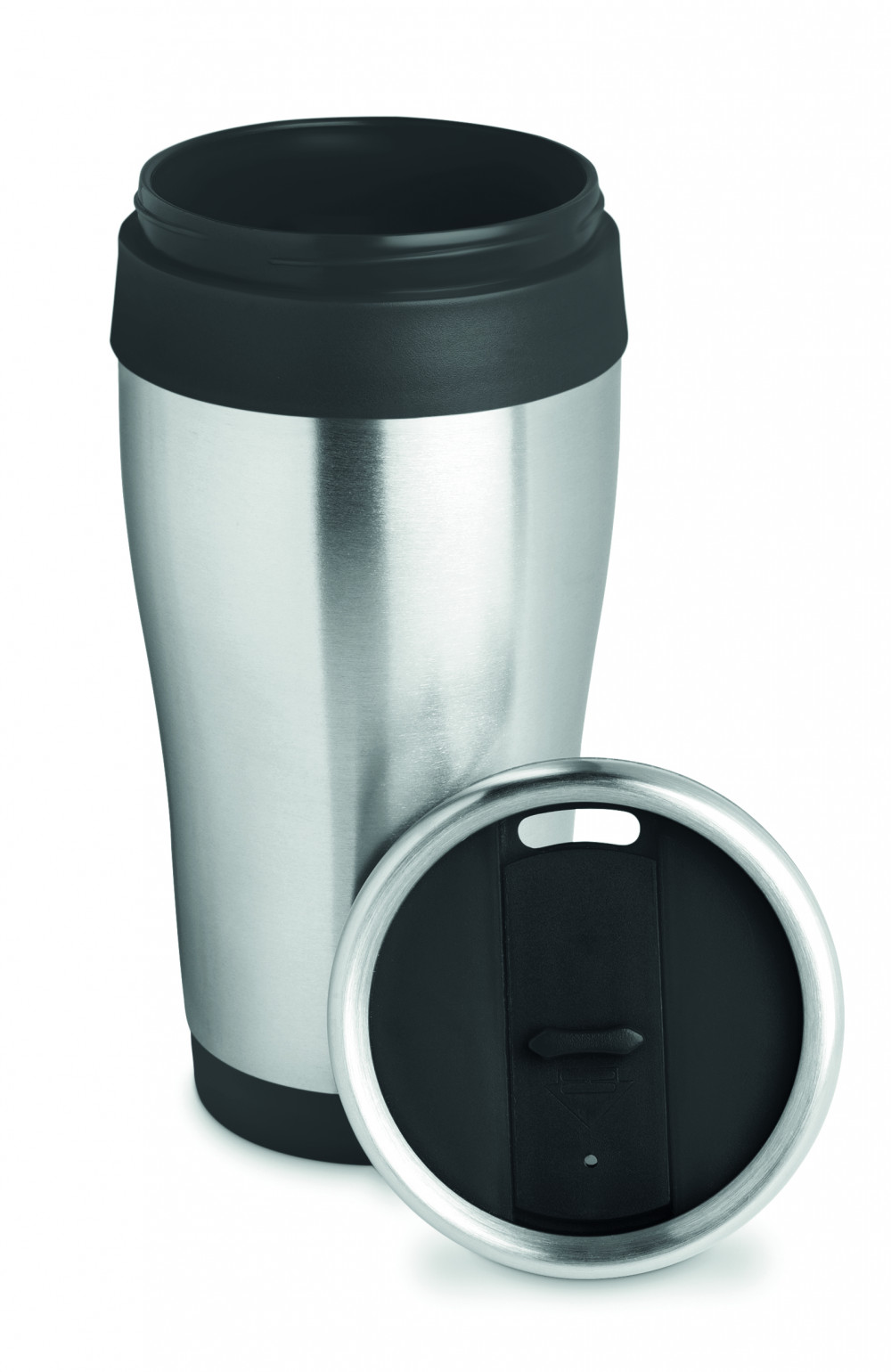 Rozsdamentes acél úti bögre PP belső résszel. Űrtartalom: 455 ml.