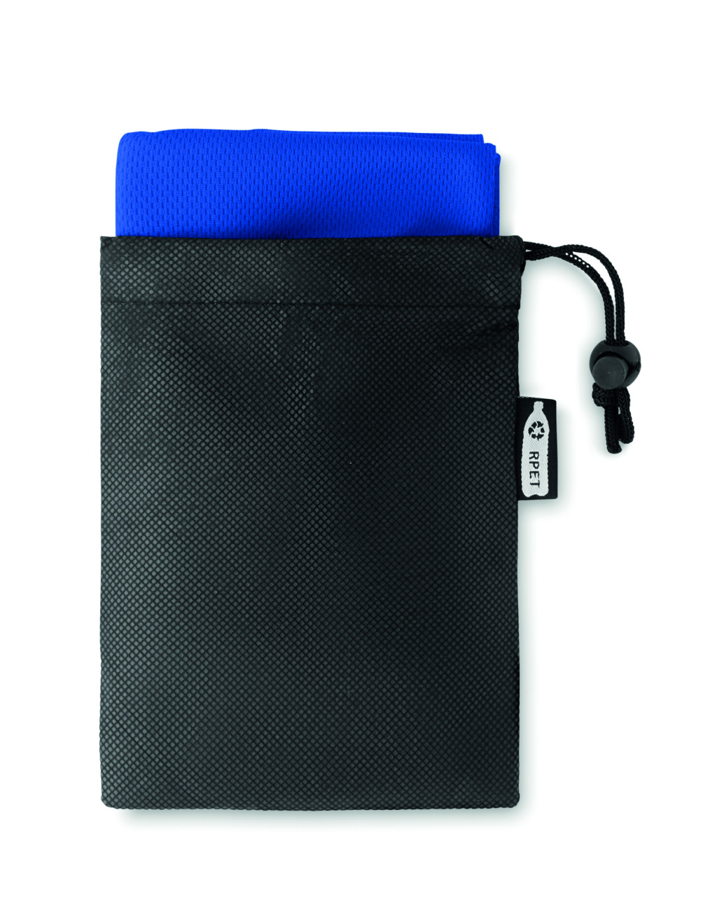 Magas nedvszívó képességű RPET sporttörölköző, RPET nemszőtt hálós hordtáskában.