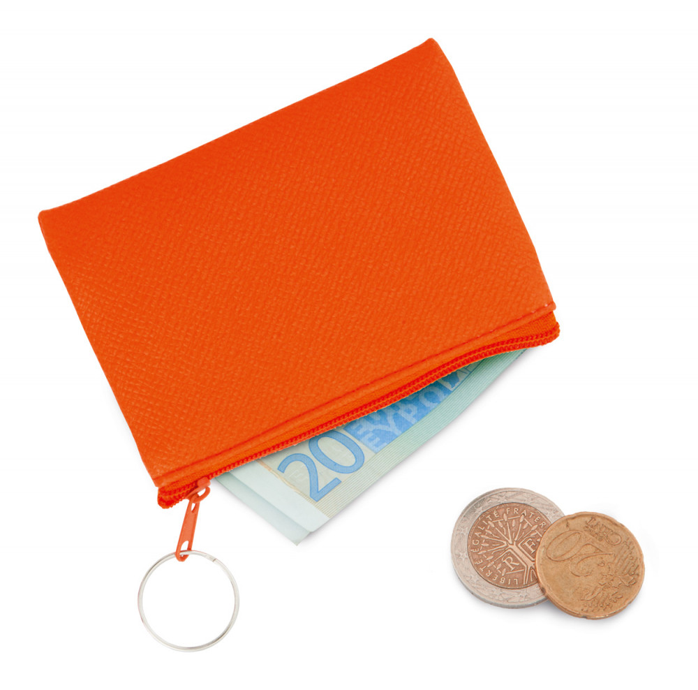 Divatos színű cipzáras pénztárca kulcskarikával. Anyaga: PVC.