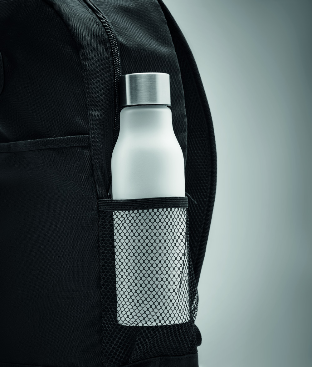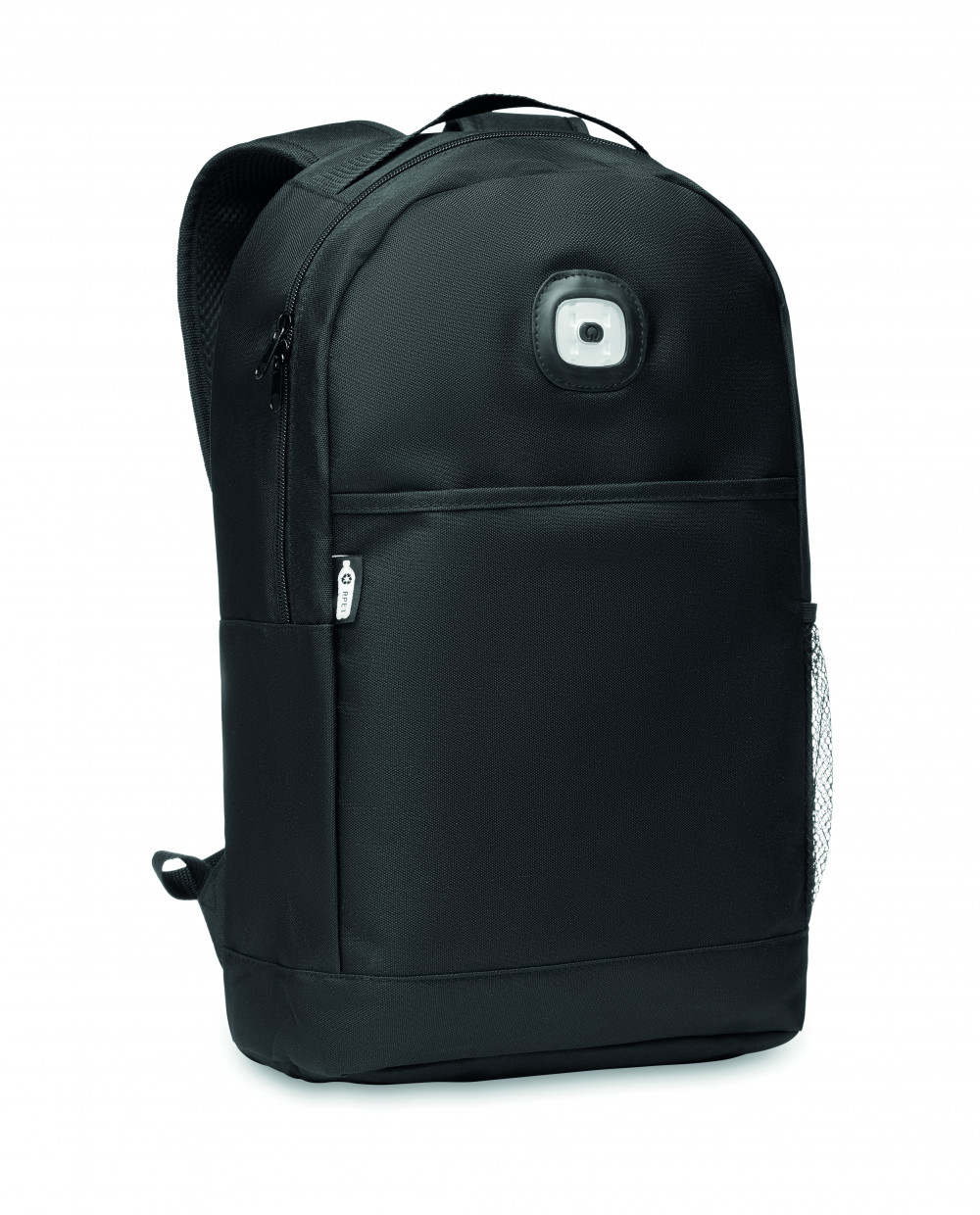 600D RPET hátizsák, az elején lecsatolható COB lámpával, első tépőzáras zsebbel, oldalán hálós zsebbel. Fehér színű COB lámpa 3 különböző fényerő beállítási lehetőséggel. A működéshez szükséges 2 db CR2032 gombelemmel szállítjuk.
