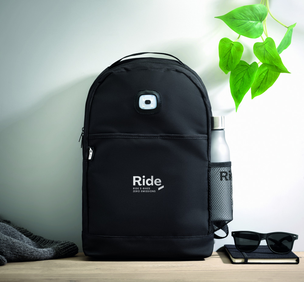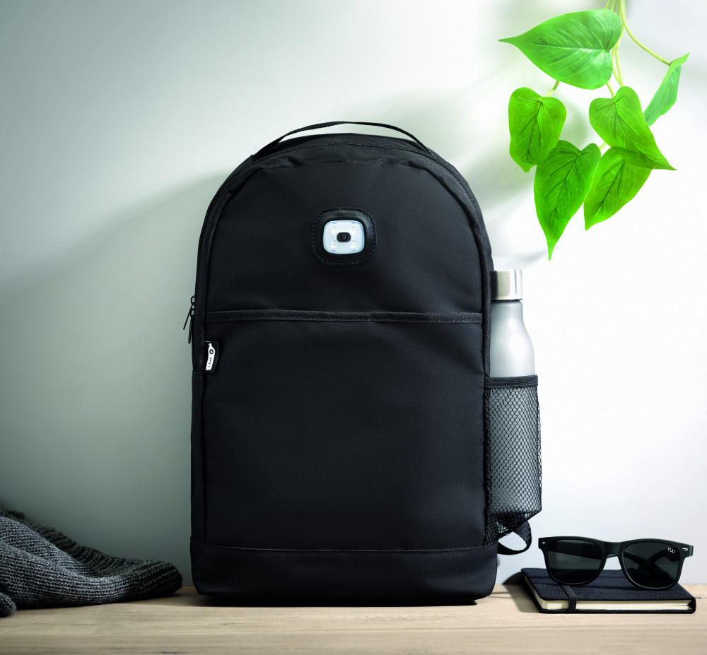 URBANBACK RPET hátizsák COB lámpával, fekete