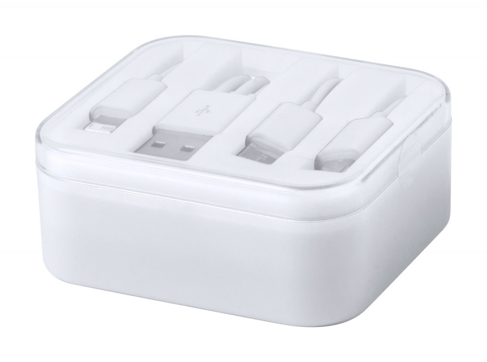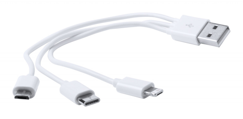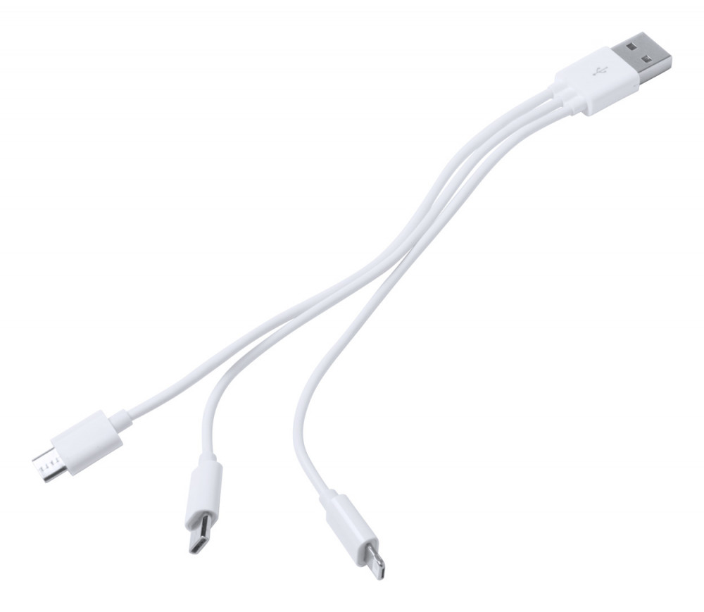 USB töltőkábel micro USB, Type C és Lightning csatlakozóval. Műanyag tokban.