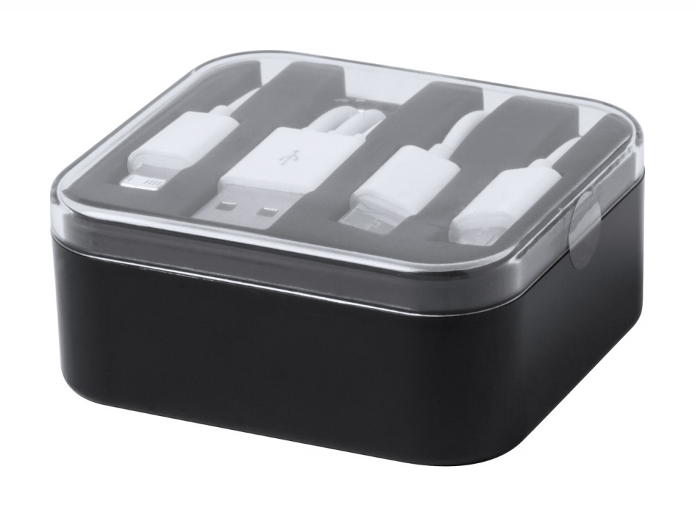USB töltőkábel micro USB, Type C és Lightning csatlakozóval. Műanyag tokban.