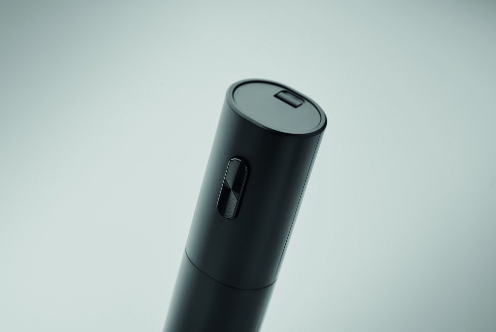 Elektromos dugóhúzó, fekete matt ABS burkolattal. 4 db AAA elemmel működik, elem nélkül szállítjuk.