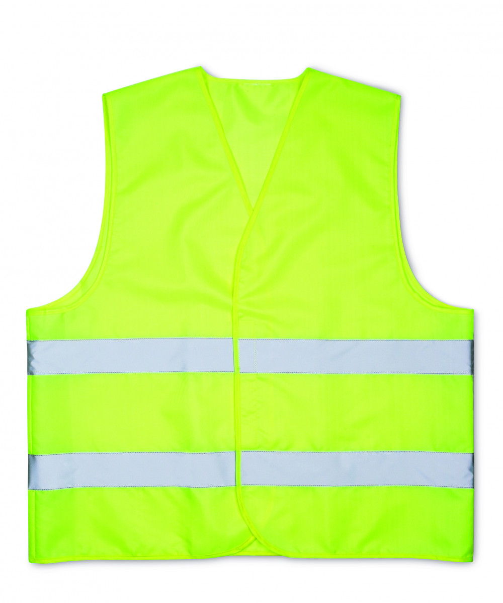 Láthatósági mellény 100% kötött poliészterből, Class2 osztályú fényvisszaverő csíkkal. EN17353.