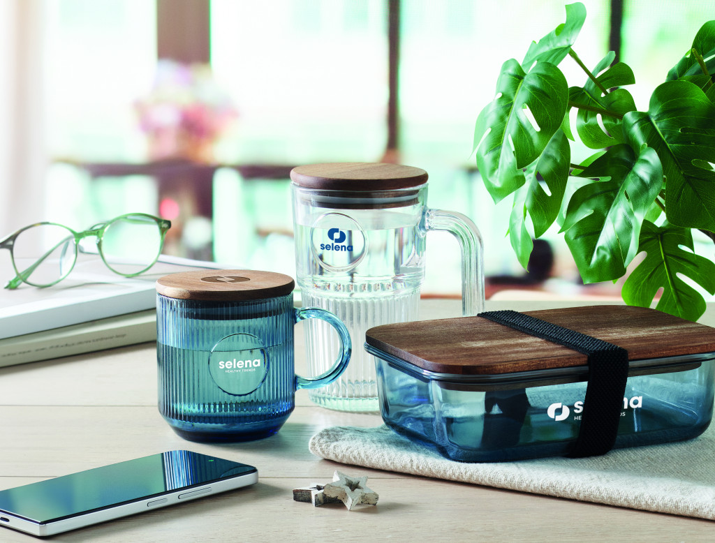 Bordázott üvegbögre akáciafa fedéllel . Űrtartalom: 300 ml. FSC®-certified | FSC 100%, W16.3, FSC-C213206