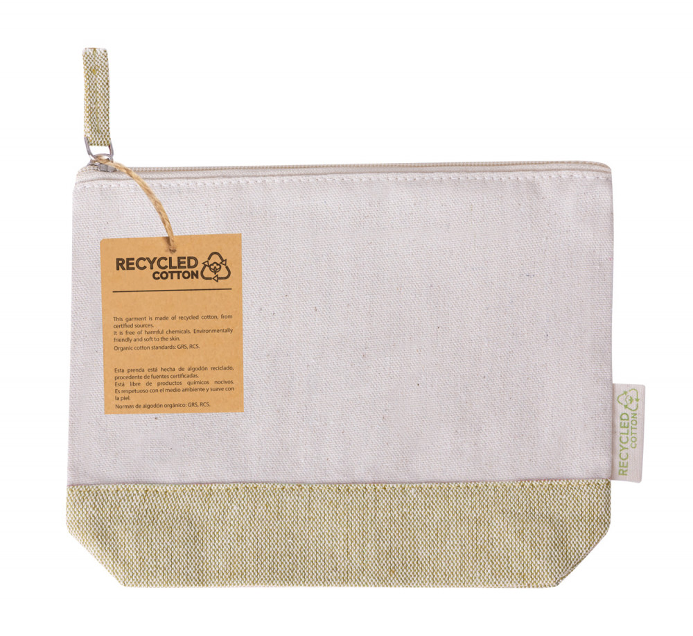 Cipzáras, kéttónusú újrahasznosított pamut kozmetikai táska. 100% újrahasznosított pamut, megkülönböztető újrahasznosított pamut címkével.