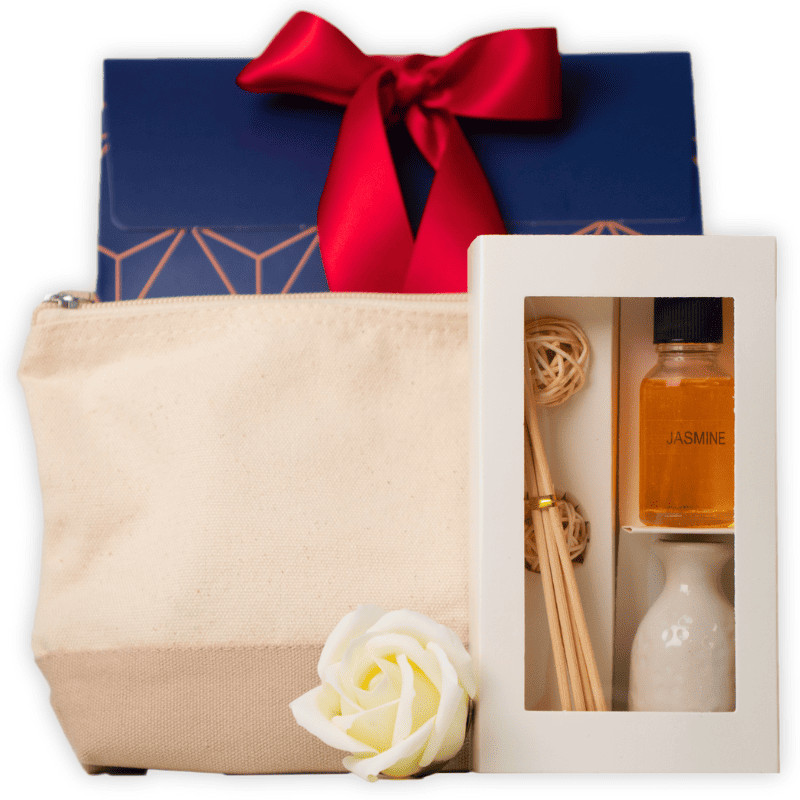 • Aroma szett (kis méretű kerámia váza, 5 db pálca, 2 db díszgömb és jázmin illatú illóolaj, fehér díszdobozban)