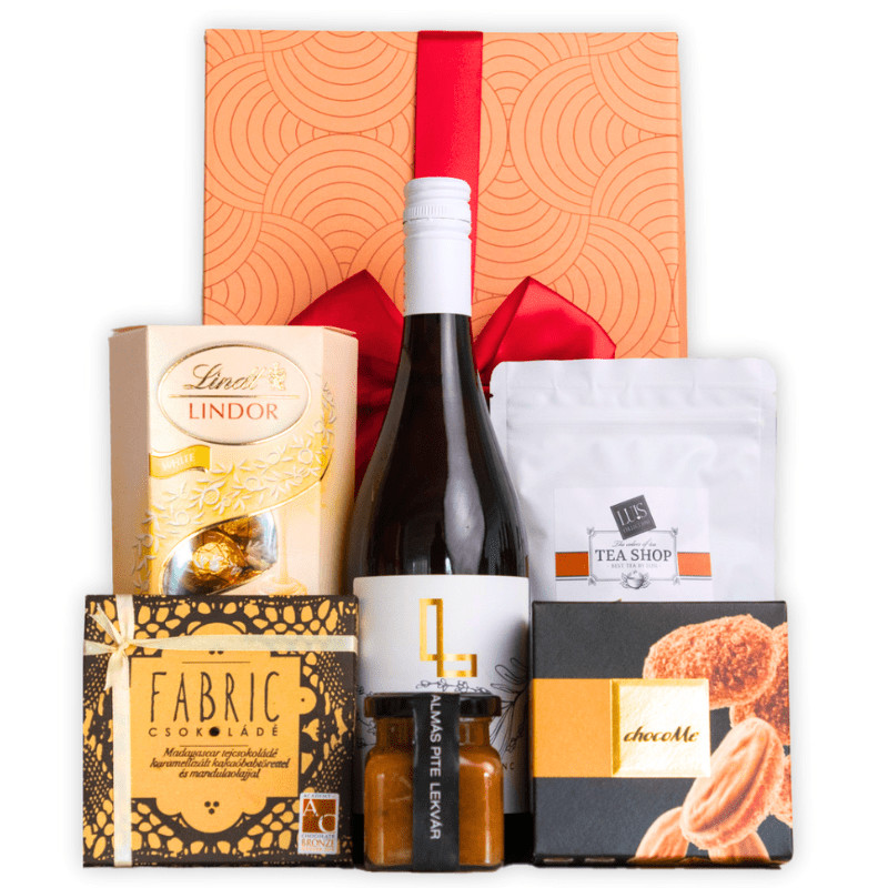 A "Winter Wishes" csomag az ünnepi hangulat minden ízét magában hordozza. A Lajvér Sauvignon Blanc bor, a magyar kézműves tejcsokoládé és a Chocome szőkecsokoládé mandulával tökéletes párost alkotnak, míg a Lindt pralinék és az almás pite ízű tea az igazi kényeztetést garantálják.