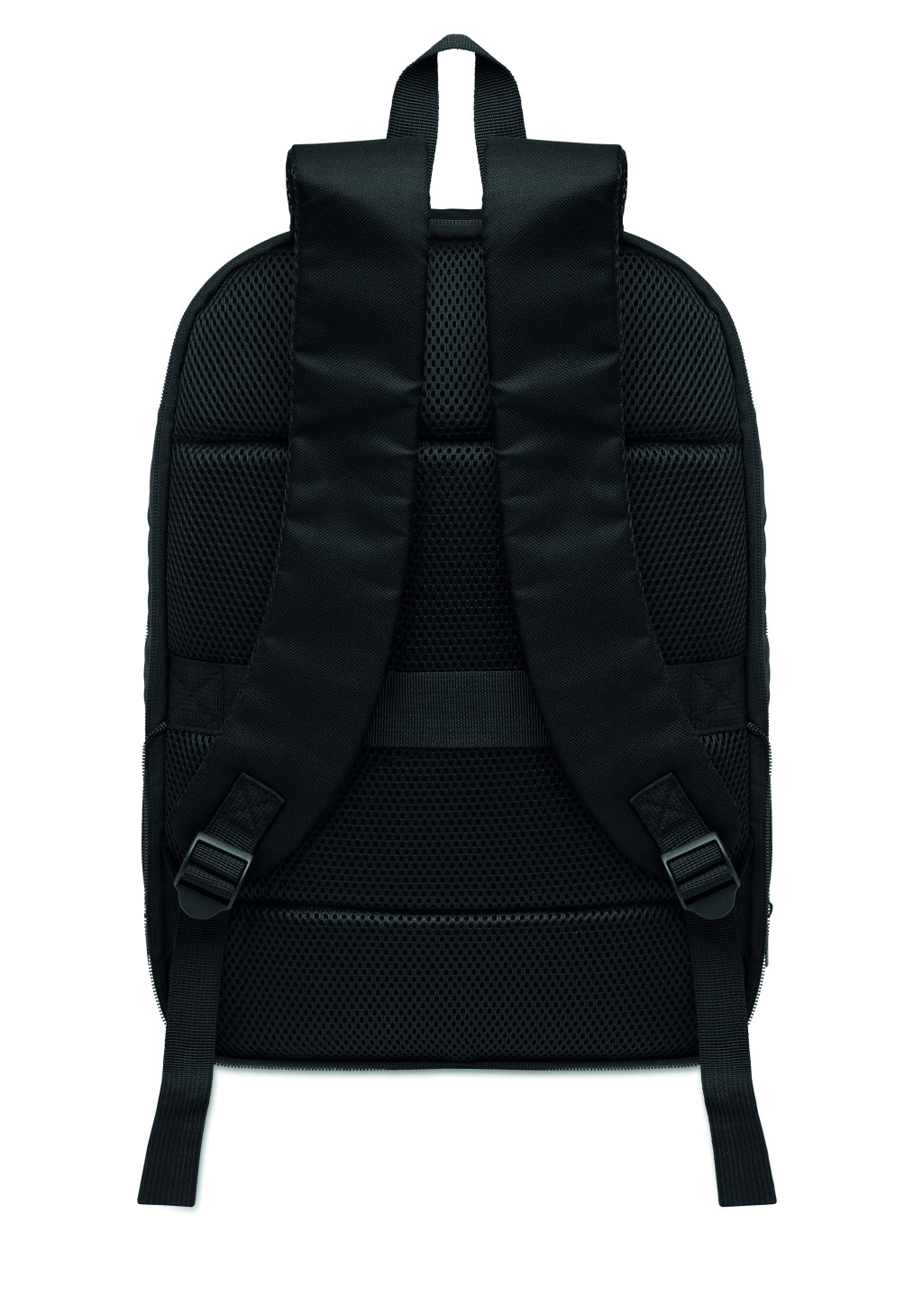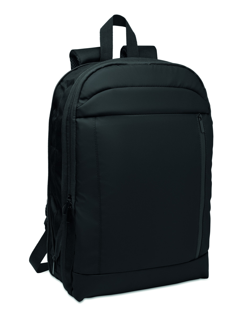 Bővíthető, 600D RPET poliészterből készült 16 colos laptop hátizsák PU bevonattal az elején, RPET poliészter béléssel. Rejtett cipzáras zseb és párnázott laptop rekesz, elülső rekesz, hálós hátoldal és gurulós bőröndre illeszkedő pánt.