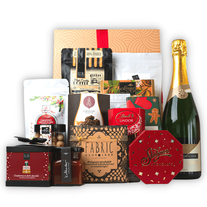Képzeld el a megajándékozottad arcán azt a ragyogó mosolyt, amikor kibontja ezt a selyem szalaggal átkötött, finomságoktól roskadozó, prémium díszdobozt.