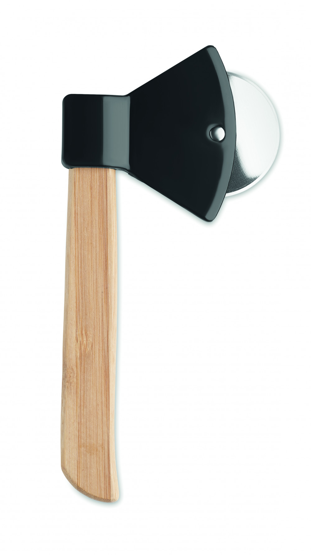 Fejsze alakú pizzavágó bambusz nyéllel. A bambusz természetes anyag, színében, mintázatában és méretében esetenként eltérő lehet.