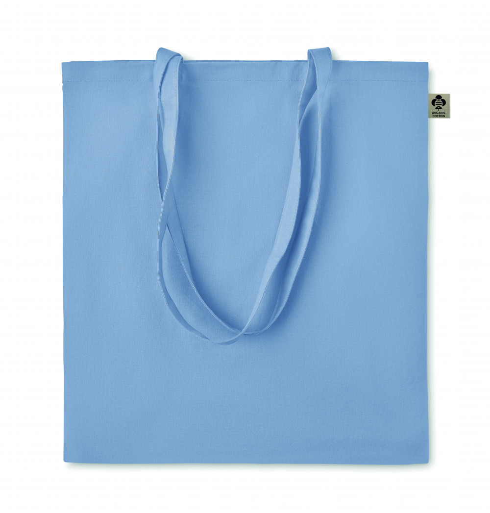 Organikus pamut bevásárlótáska, hosszú fülekkel. Klasszikus bevásárlótáska szabással, a napi élelmiszerek vagy egyéb tárgyak szállítására készült. A hosszú fülekkel kézben vagy vállon is hordható. 140 g. vastag, 100%-ben természetes organikus pamutból. Ez a termék OEKO-TEX® STANDARD 100 tanúsítvánnyal rendelkezik.