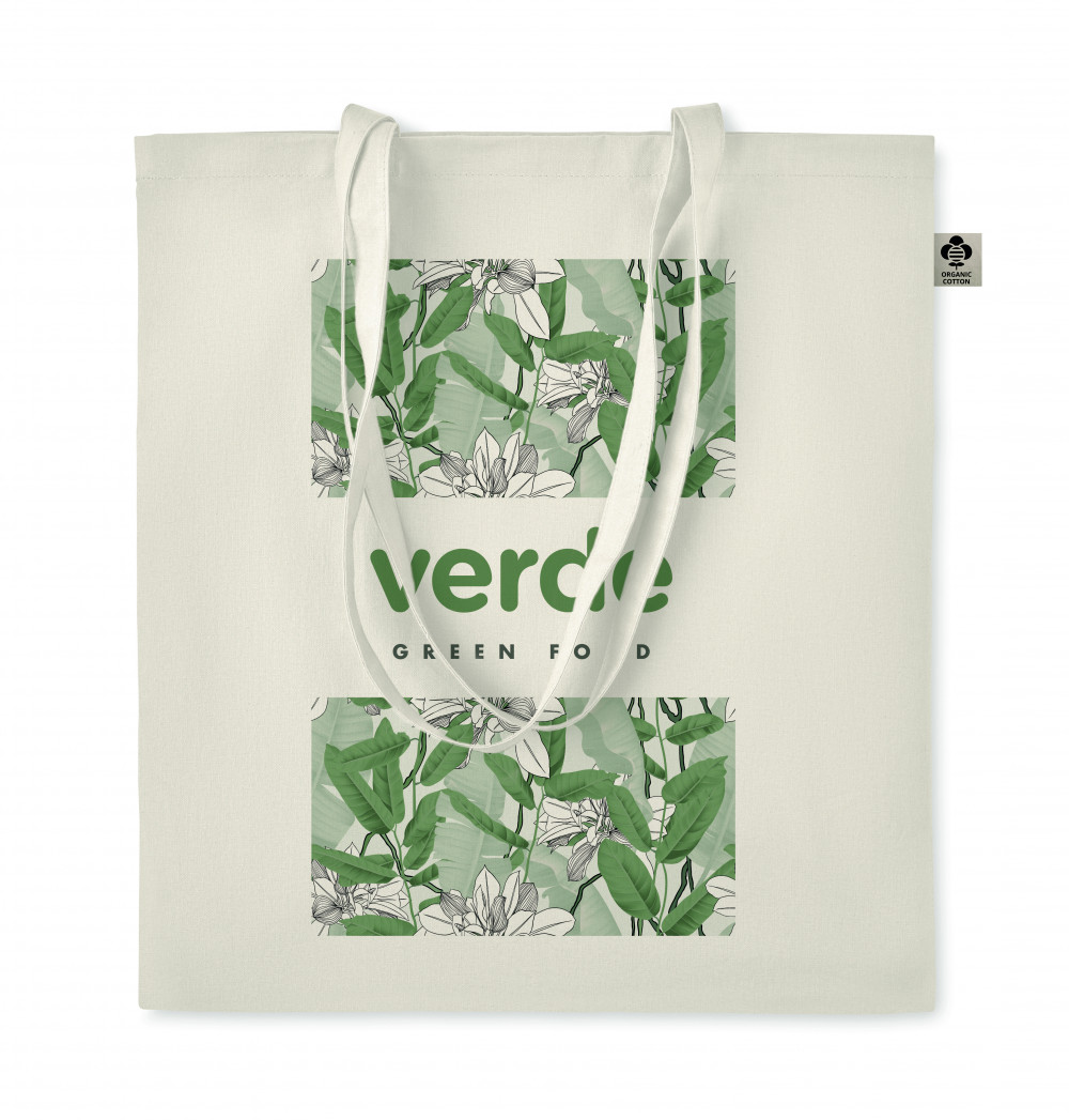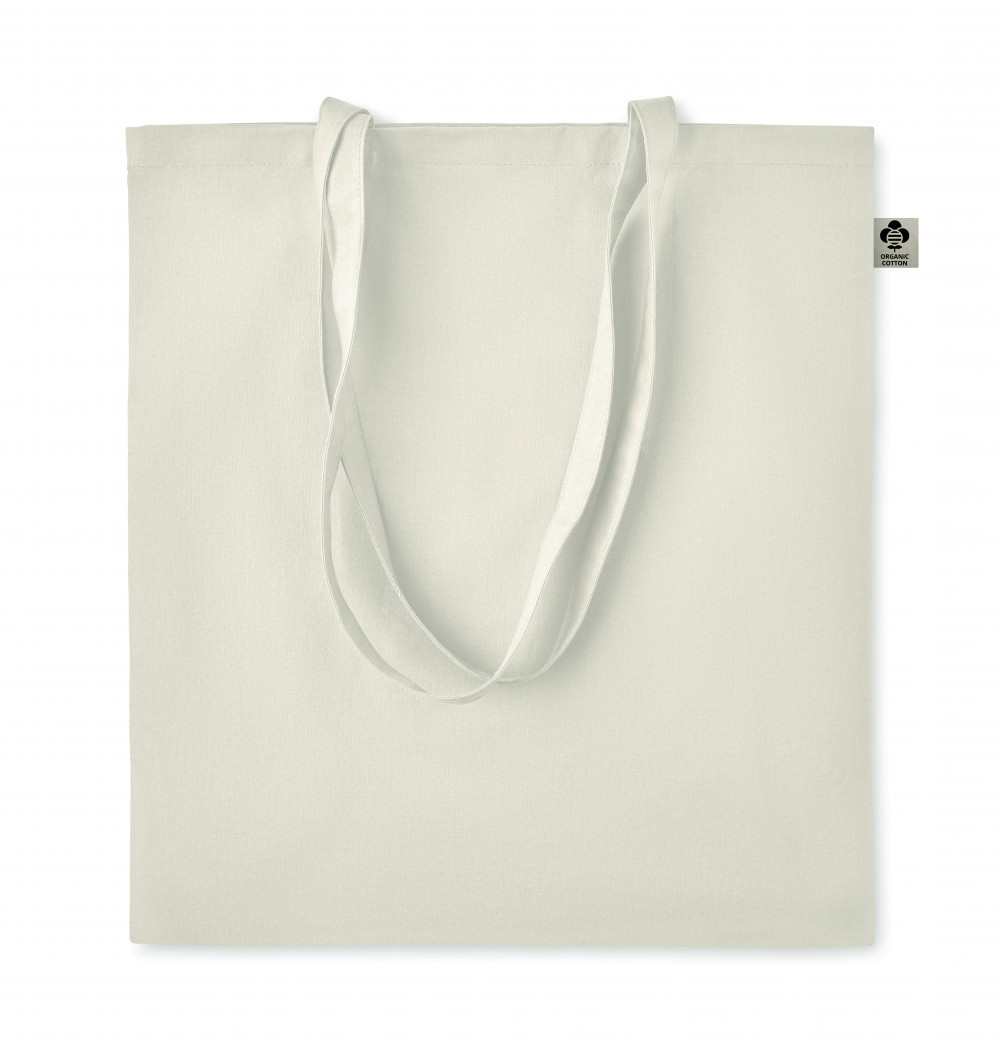 Organikus pamut bevásárlótáska, hosszú fülekkel. Klasszikus bevásárlótáska szabással, a napi élelmiszerek vagy egyéb tárgyak szállítására készült. A hosszú fülekkel kézben vagy vállon is hordható. 140 g. vastag, 100%-ben természetes organikus pamutból. Ez a termék OEKO-TEX® STANDARD 100 tanúsítvánnyal rendelkezik.
