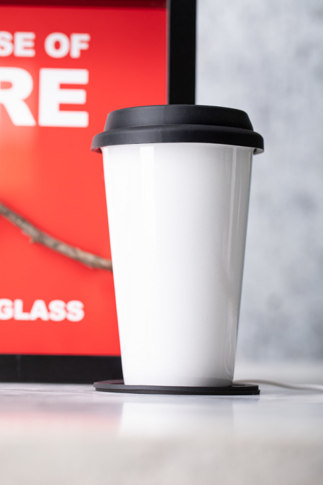 Kerámia bögre szilikon ivórésszel, 400 ml. Ajándékdobozban szállítjuk.