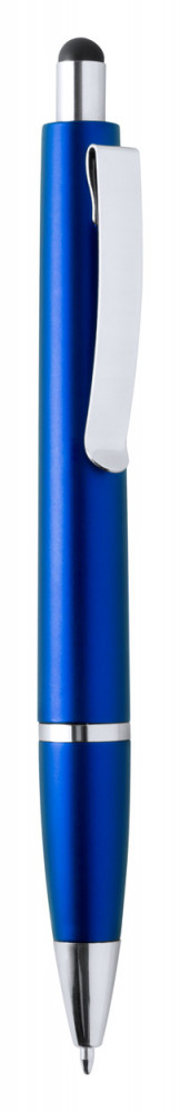 Műanyag golyóstoll érintőképernyős funkcióval, megegyező színű érintővel és LED fénnyel megvilágított gravírozáshoz. Gombelemmel és kék tollbetéttel.