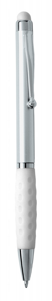 Fém hatású érintőképernyős golyóstoll, színes gumi markolattal és megegyező színű érintőgombbal. Kék tollbetéttel szállítjuk.