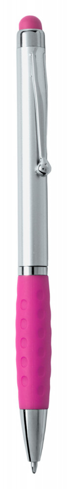 Fém hatású érintőképernyős golyóstoll, színes gumi markolattal és megegyező színű érintőgombbal. Kék tollbetéttel szállítjuk.