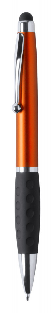 Műanyag golyóstoll érintőképernyős funkcióval, gumi markolattal és 1 LED fénnyel, ami megvilágítja a gravírozott emblémát. Gombelemmel és kék tollbetéttel szállítjuk.