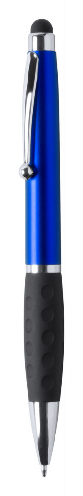 Műanyag golyóstoll érintőképernyős funkcióval, gumi markolattal és 1 LED fénnyel, ami megvilágítja a gravírozott emblémát. Gombelemmel és kék tollbetéttel szállítjuk.