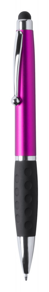 Műanyag golyóstoll érintőképernyős funkcióval, gumi markolattal és 1 LED fénnyel, ami megvilágítja a gravírozott emblémát. Gombelemmel és kék tollbetéttel szállítjuk.