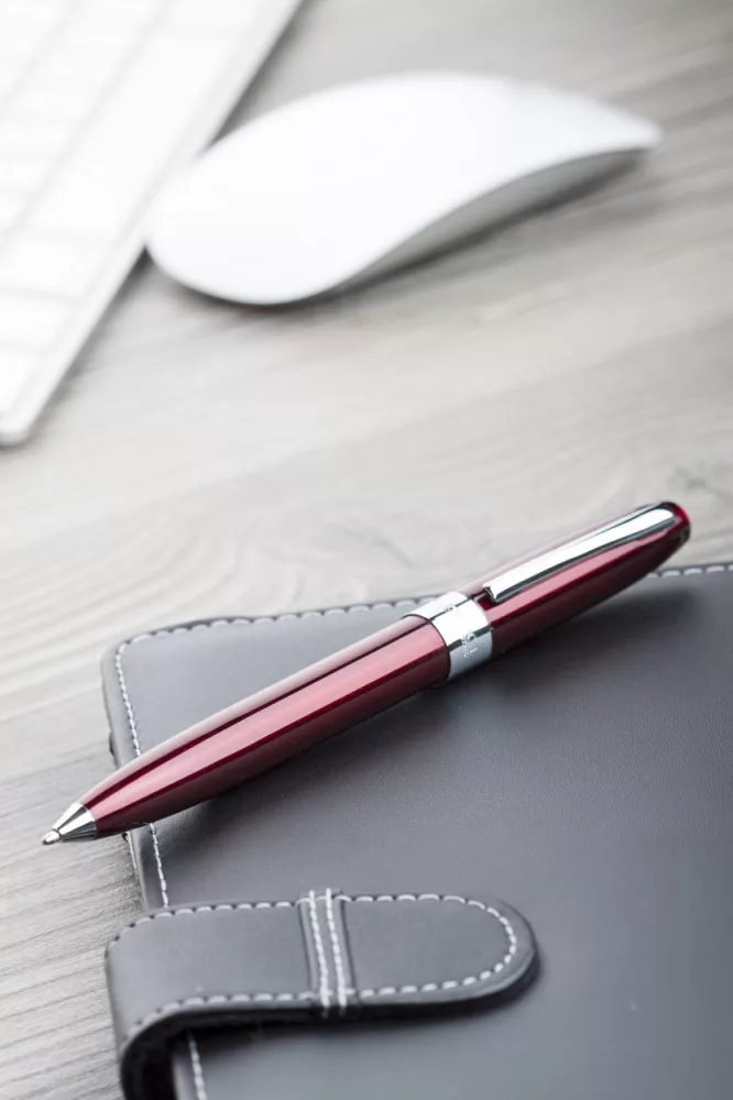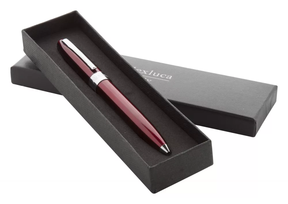 Elegáns, fém golyóstoll Alexluca márkajelzéssel, ezüst színű tollvéggel és klipsszel. Kék tollbetéttel szállítjuk.