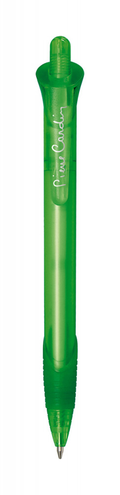 Műanyag golyóstoll, gumírozott markolattal. Pierre Cardin márkatermék. Kék tollbetéttel szállítjuk.
