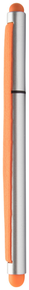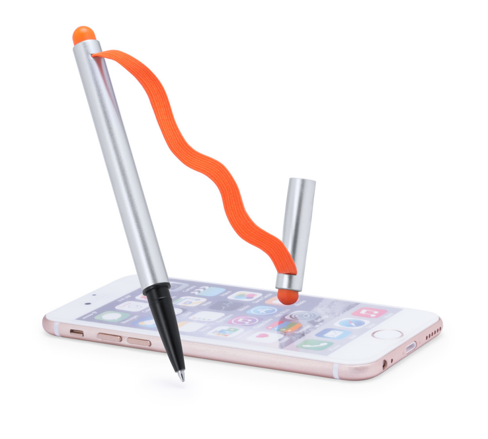 Műanyag golyóstoll érintőképernyős véggel és színes gumipánttal. Kék tollbetéttel.