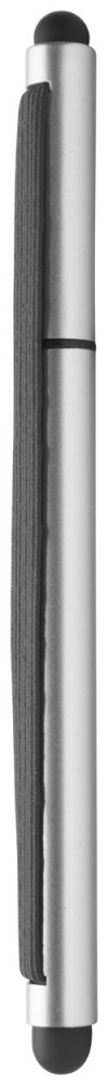 Műanyag golyóstoll érintőképernyős véggel és színes gumipánttal. Kék tollbetéttel.