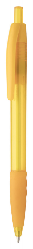 Átlátszó műanyag golyóstoll megegyező színű gumi markolattal. Kék tollbetéttel szállítjuk.